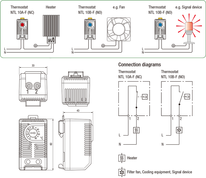 Small Compact Thermostat NTL 10A-F/NTL 10B-F