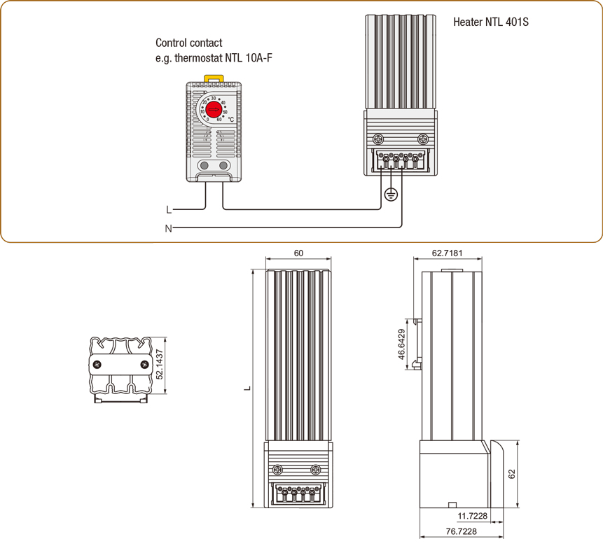 These heaters are used in enclosures where damage from condensation must be prevented, or where the temperature may not fall below a minimum value. The aluminium profile heater body design has a chimney effect and distributes the heat evenly. The heaters are designed for permanent operation. Pressure clamb connectors save time and simplify installation.